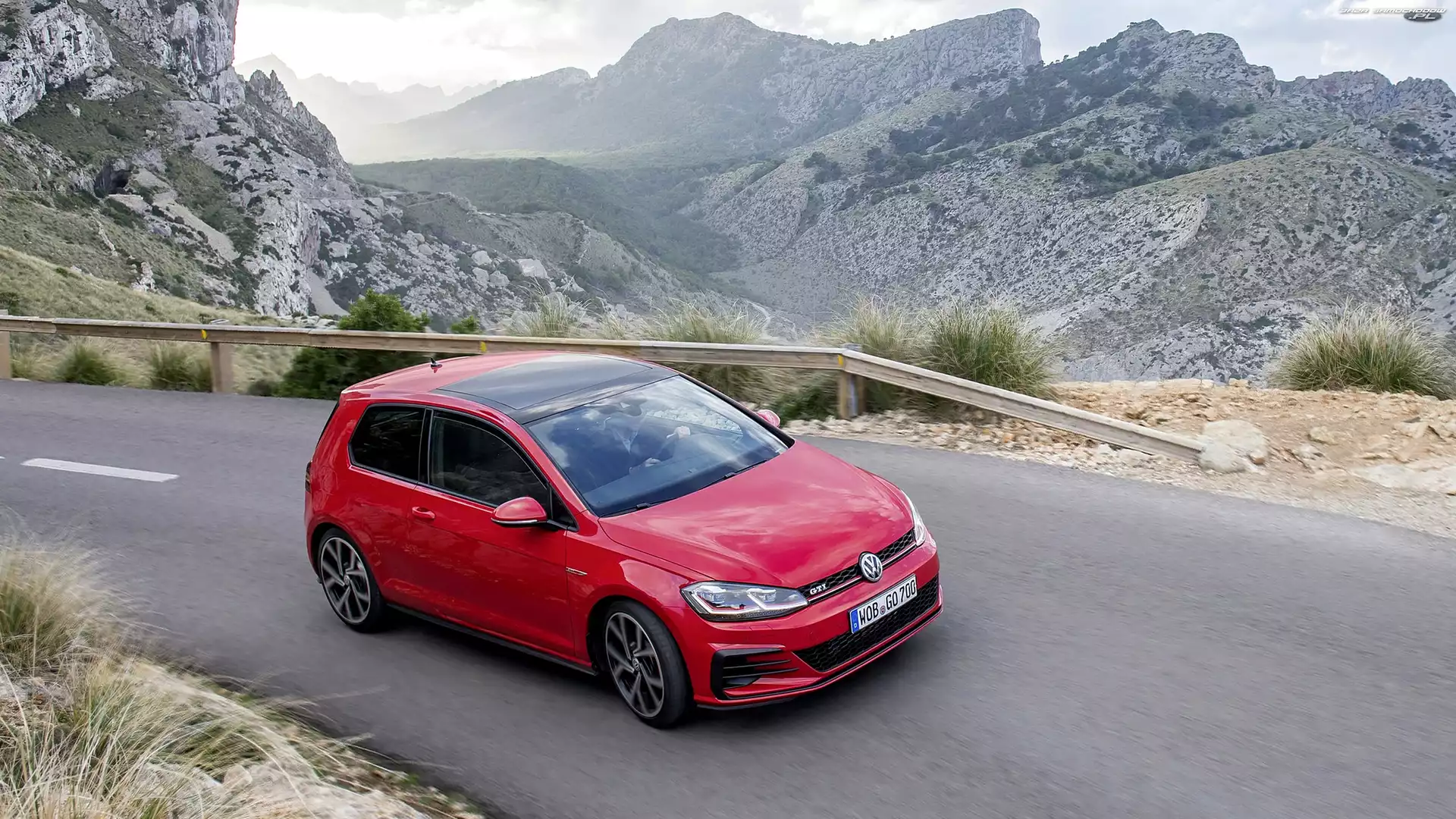 Samochód: Barierka, GTI Facelift, Czerwony, Góry, Droga, Vokswagen Golf 7, 2017