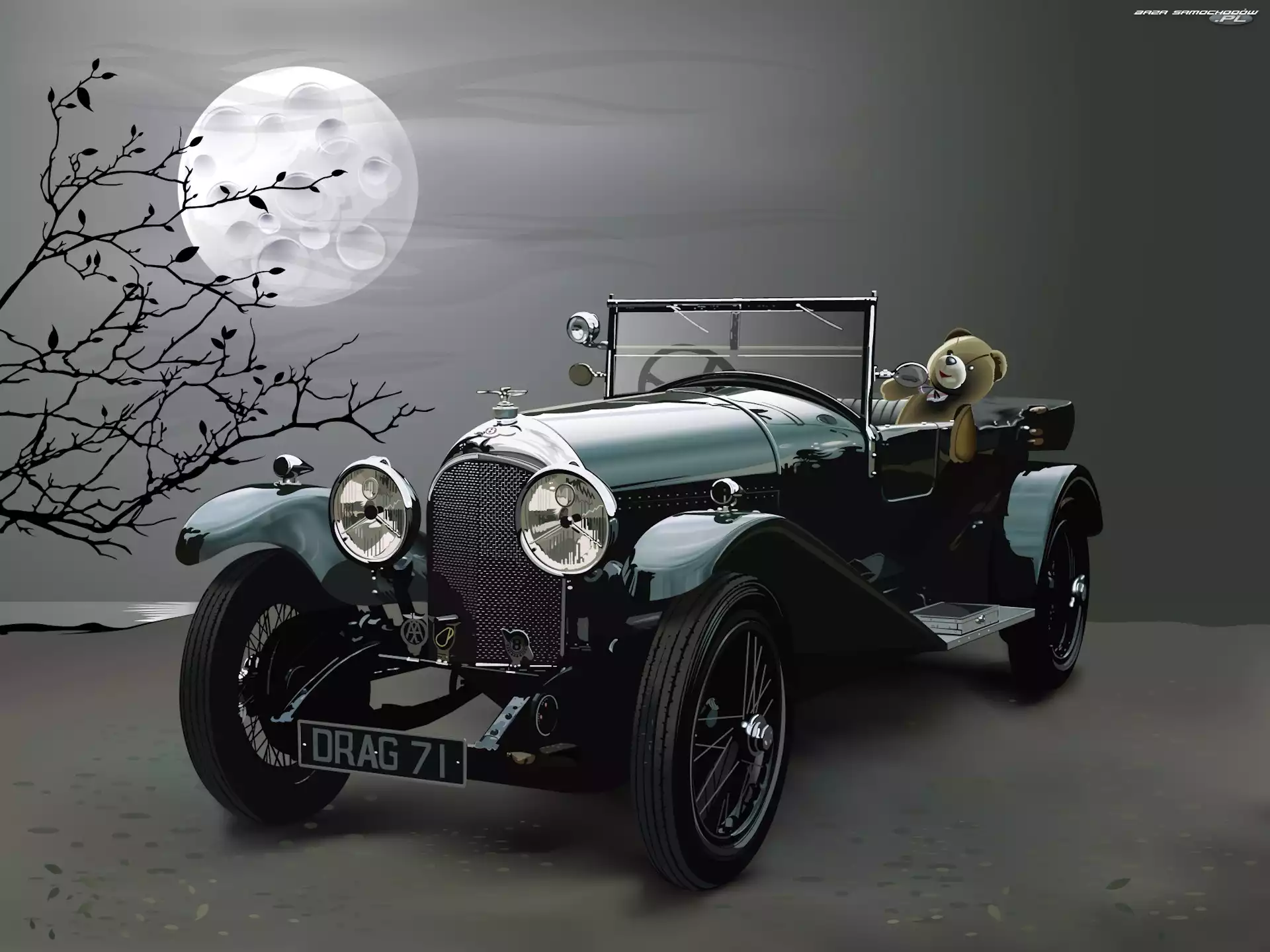 Samochód: Gałązki, Księżyc, Chevrolet, Miś